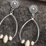 Add some western charm to your outfit with our Artificial Turquoise or Ivory Teardrop Earrings! These earrings feature a round floral post and teardrop-shaped rope-style wire with 3 Bezel-set faux Turquoise or ivory accents. Perfect for any occasion, these earrings are sure to make a statement!