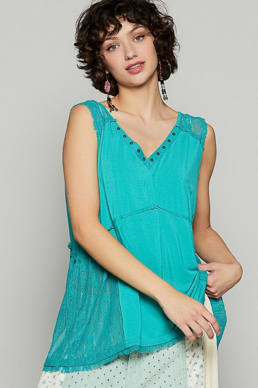 Perfee Lace Tied Mock Neck Tank