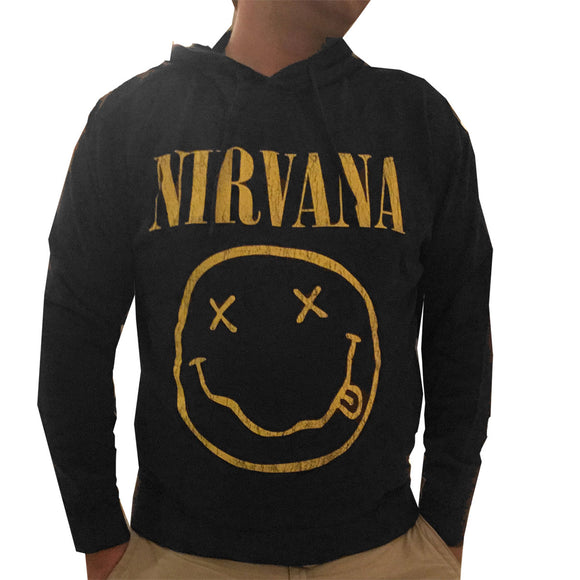 Nirvana Jumbo Distressed Smiley Face Hoodie Black NEW MD