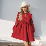 Baby Doll Front Tied Long Sleeve Mini Dress