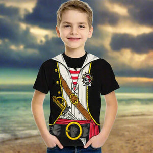 Transform into a swashbuckling pirate in seconds with our Halloween costume t-shirt! This boy's black shirt features a printed pirate outfit, making it the easiest and most comfortable way to dress up for the holiday. No hassle, just instant fun!