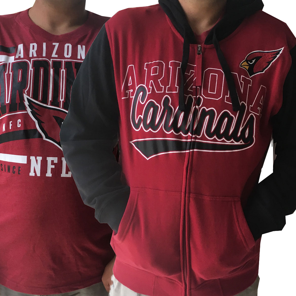 Official NFL Arizona Cardinals soft and comfy full zip hooded sweatshirt by Giii. Hoodie has embroidered logo and printed lettering. Includes FREE matching t-shirt.