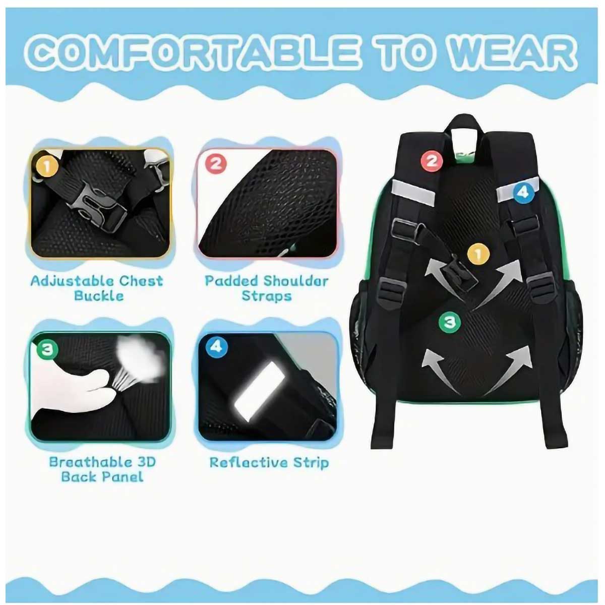 Designed for young learners, this vibrant color block mini backpack combines style with practical functionality. Lightweight yet durable, it features padded shoulder straps and a secure chest buckle to keep your child comfortable throughout the school day. Reflective accents enhance visibility and safety during morning commutes. The water-resistant exterior and reinforced double stitching protect contents from daily wear, while the fully lined interior and multiple pockets—including a zippered front compartment—provide smart organization for books, supplies, and essentials. Premium construction at an accessible price point makes this the smart choice for parents seeking quality and value.