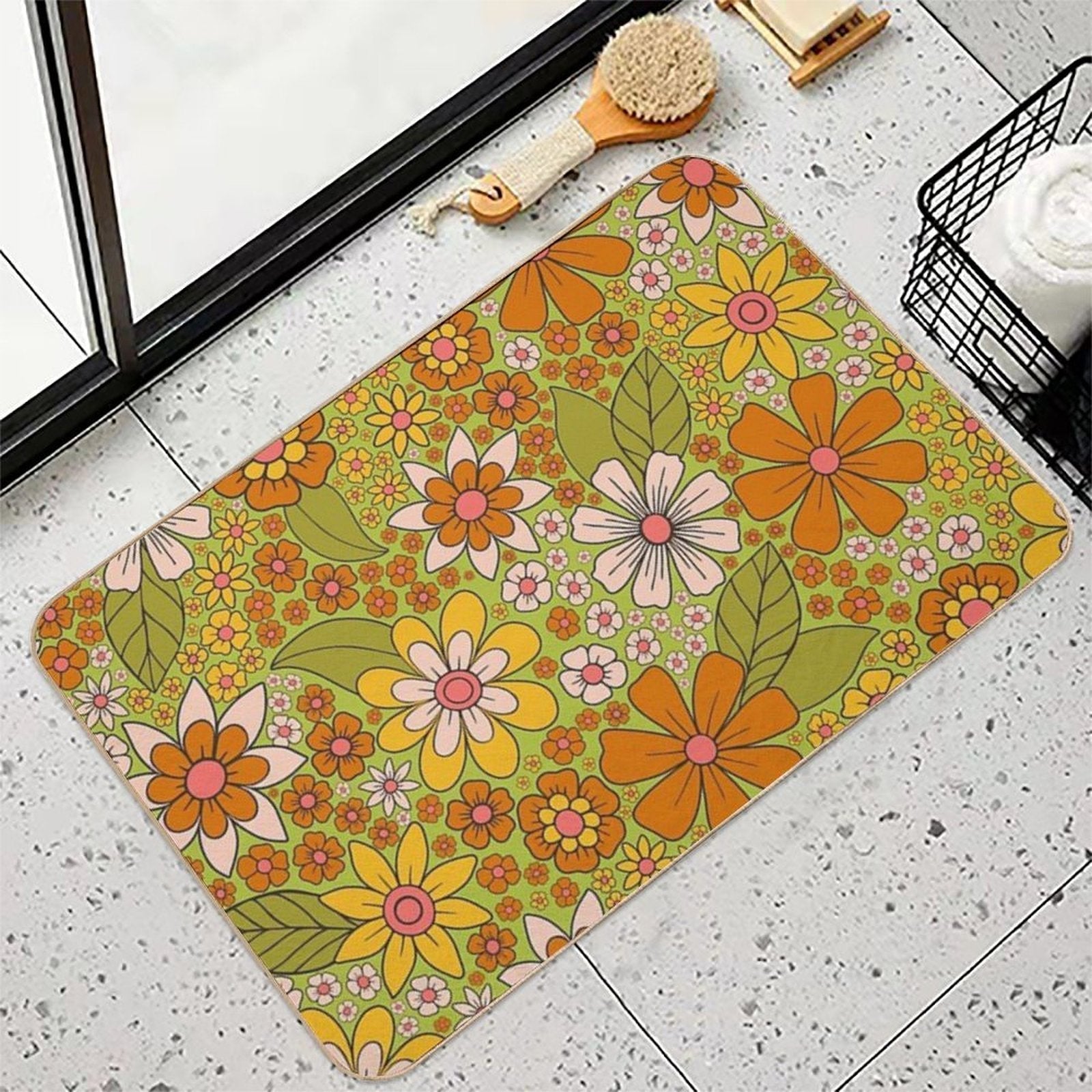 High-Traffic Bath Mat 1960s, 1970s Retro Floral Flower Power