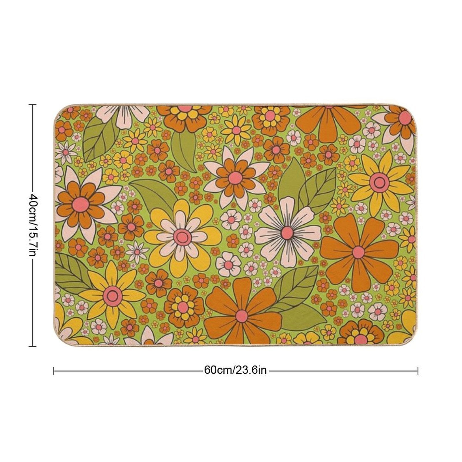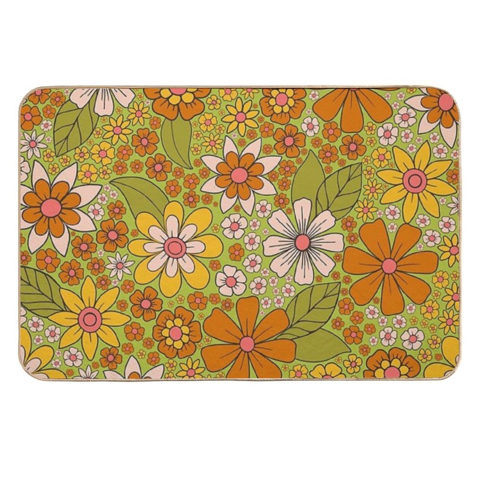 Transform your entryways with the 1960s, 1970s Retro Floral in Green, Pink & Orange - Flower Power Mat – crafted from durable diatomite-inspired material and plush 1600GSM flannel that absorbs moisture instantly, while the textured surface traps dirt before it spreads.The rubber backing grips floors securely, ideal for placements on tiles, wood, or marble.