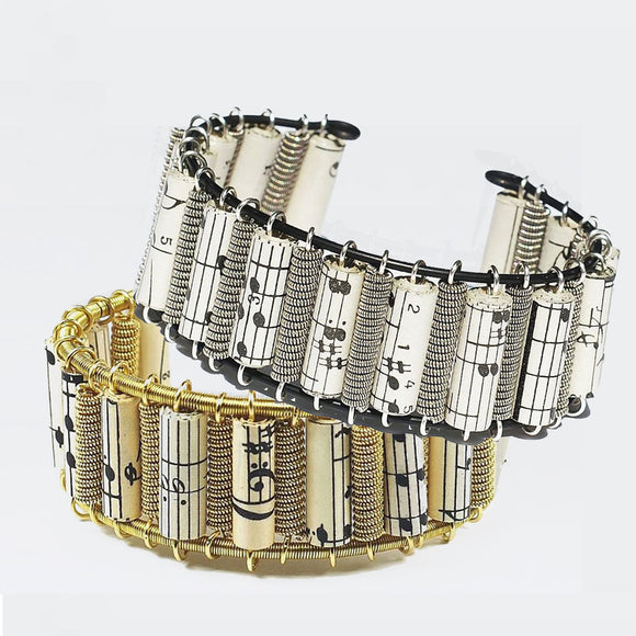 Handmade Guitar String Bracelet with Rolled Sheet Music Beads