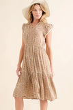 The dainty floral printed tiered dress is a stylish choice for a summery look. The dainty print evokes a casual vibe, perfect for beach vacations or summer parties. The tiered design adds volume and movement to the dress, creating an effortless and breezy silhouette. Pair this dress with sandals or wedges for a relaxed and chic outfit that is perfect for warm weather days. Accessorize with statement earrings and a straw hat to complement the tropical theme and complete your summer look.
