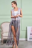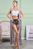 This suede vest features star stud embellishments and long fringe details for a Western-inspired and bohemian look. Perfect for adding a touch of edge to your outfit, the vest exudes a stylish and free-spirited vibe. The star studs and fringe add a unique and eye-catching element to the vest. Channel your inner cowgirl with this star stud and fringe detail suede vest!
