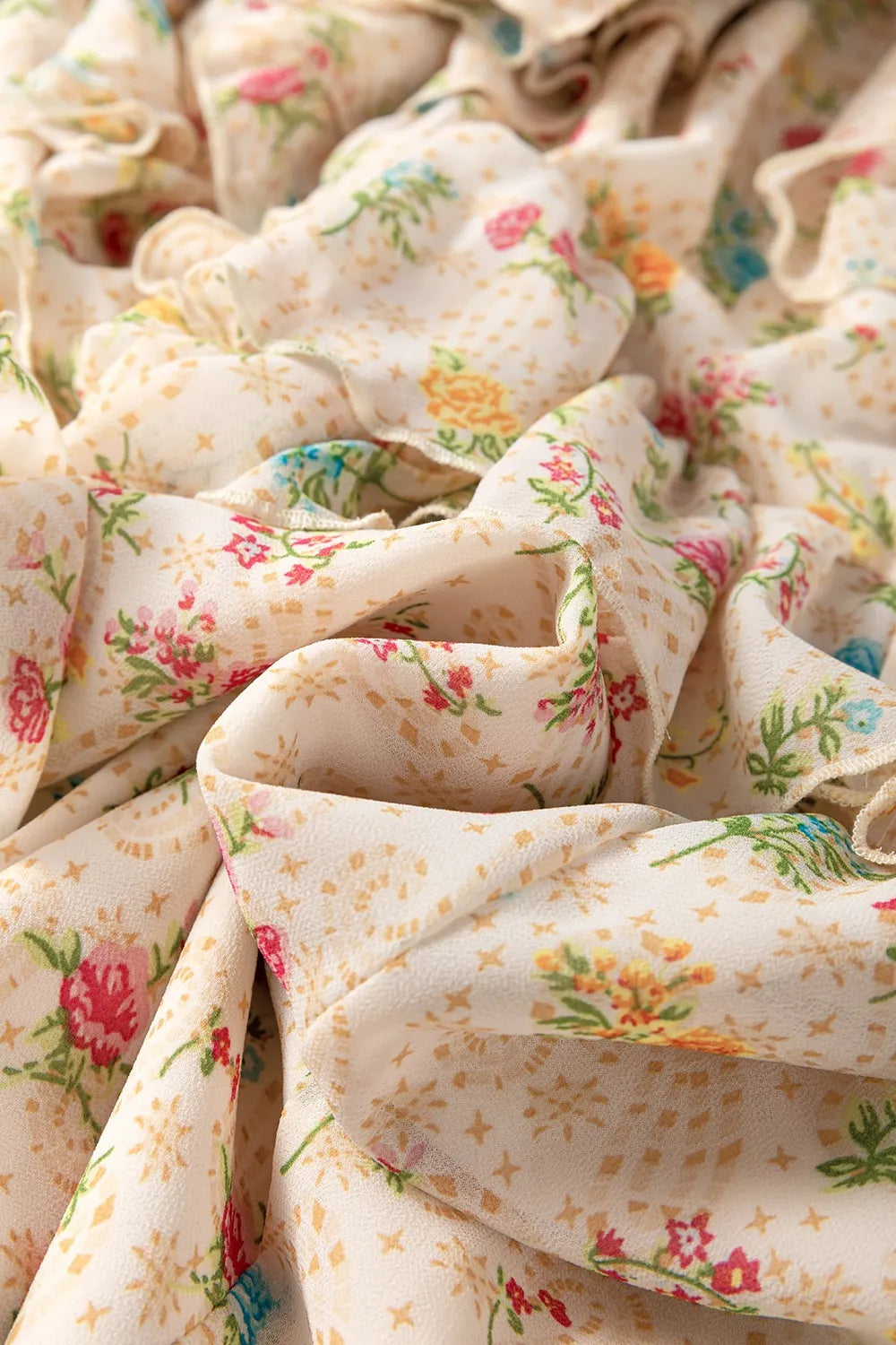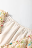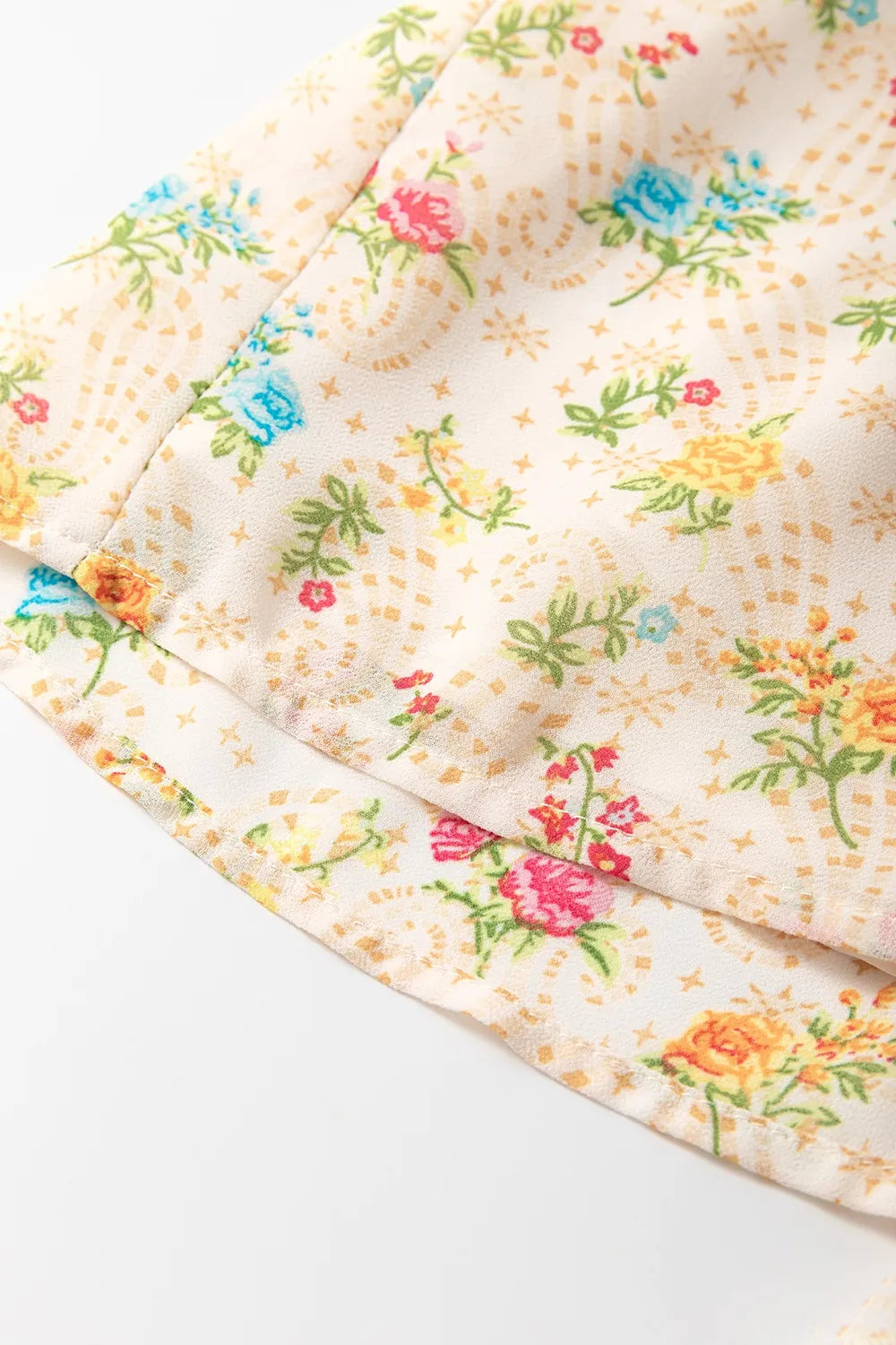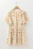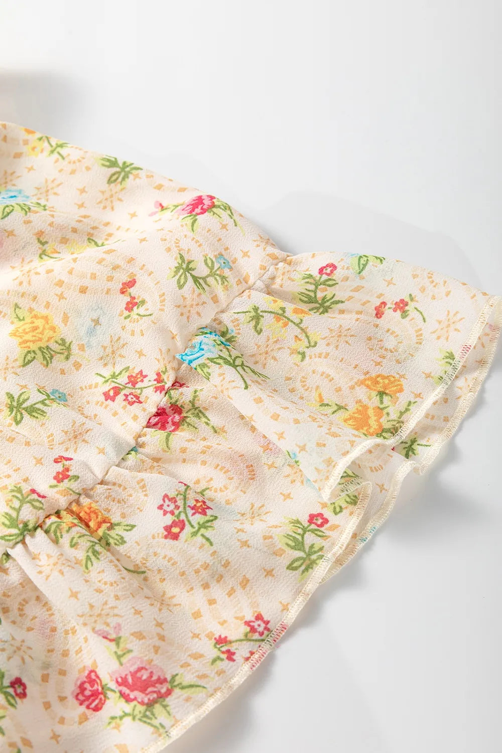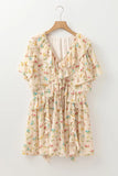 Boho Floral Tie V Neck Wide Sleeve Mini Dress