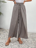 Comfortable and charming wide leg pants with feminine floral print. These pants wrap your figure, creating unique split legs. The gathered waist is tied for a customizable fit. Choose from 5 beautiful colors to express your personal style.