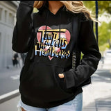 Get ready to rock out in style with this Tom Petty & The Heartbreakers pullover hoodie! Featuring a vibrant heart design and playful font, this black hoodie pays homage to the legendary Southern Rock band. Made with an environmentally friendly vinyl heat transfer, this hoodie is perfect for both music lovers and the planet.