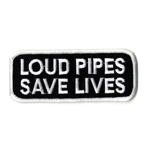 This is a Loud Pipes save Lives embroidered iron on patch. The patch measures 4 across and 2 down. The patch is in white lettering with a black background. The patch is great for sewn on or iron on. The patch is also great for hats,shirts,bags,ectWe Also Recommend