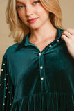 Umgee Pearl Detail Half Sleeve Velvet Babydoll Blouse