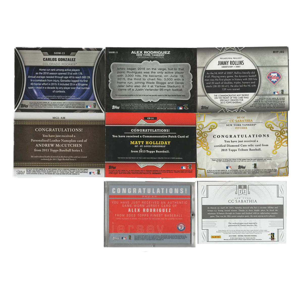 Lot of 8 MLB Game-Worn Jersey Baseball Cards