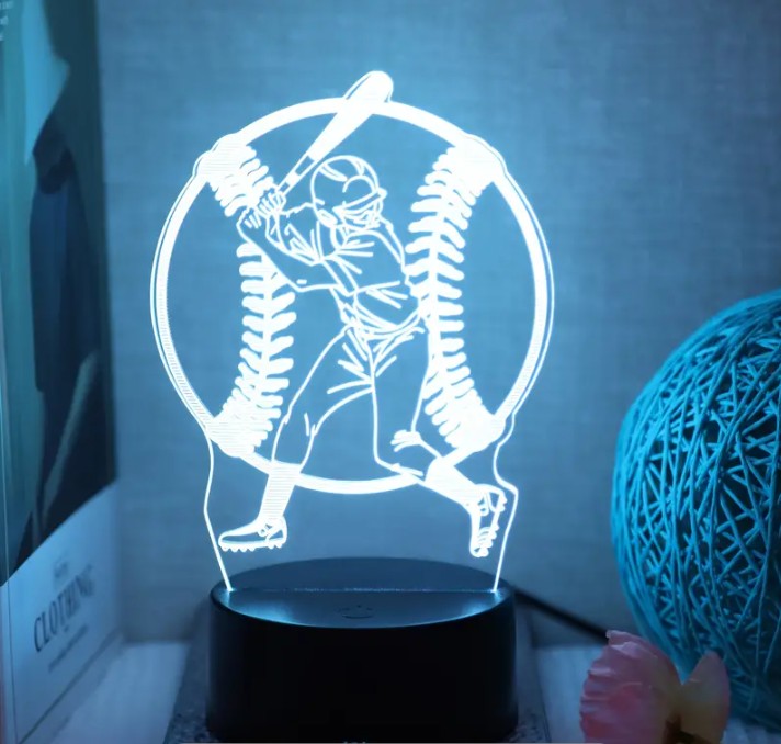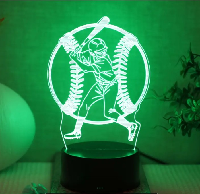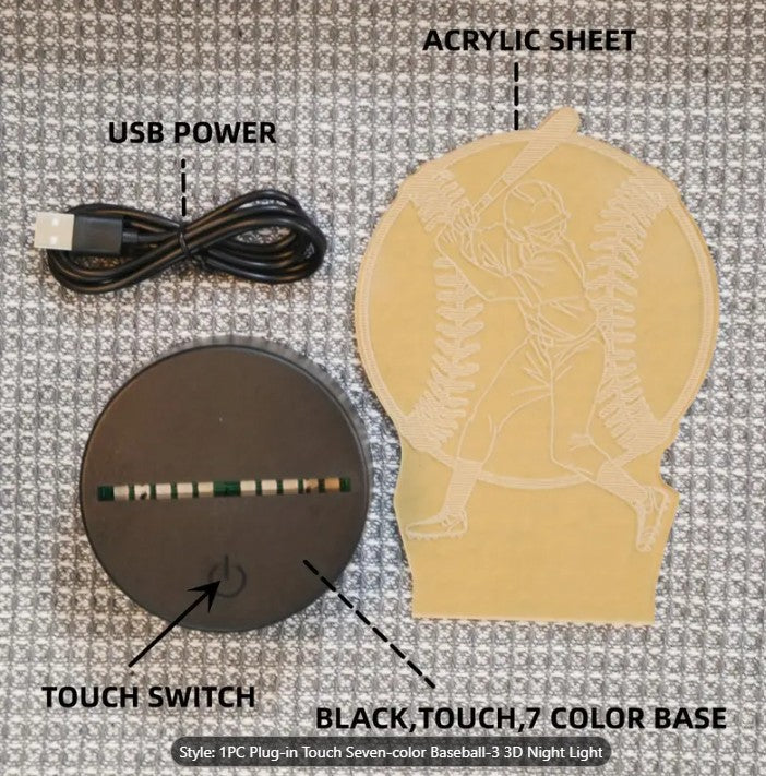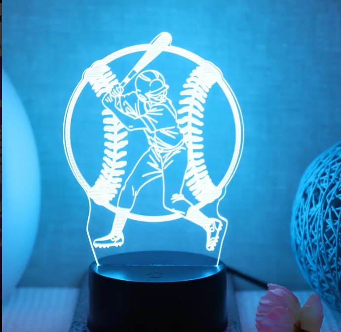 The 3D Baseball LED Night Light has a touch control that allows for easy use, while the energy-efficient color changing decoration adds a fun touch to any space. Made with high-quality acrylic and ABS material, it has a polished surface for a sleek look. Its touch switch and low voltage power cable make it safe and convenient to use.
