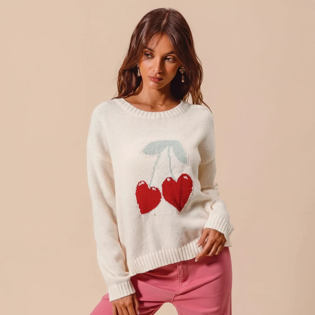 The Heart Cherry Knitted Valentine Sweater Top is a charming and festive choice for celebrating the holiday of love. Featuring adorable heart and cherry motifs, this sweater is perfect for adding a touch of whimsy to your outfit. The knitted texture provides warmth and coziness, making it ideal for chilly days. Pair this sweater with jeans or a skirt for a cute and cheerful Valentine's Day look. Embrace the spirit of love and fun with this delightful sweater top.