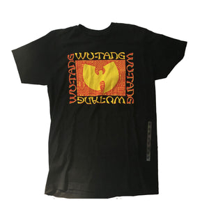 Men's Classic black Wu-Tang Clan T-shirt features their logo boldly in orange and yellow.