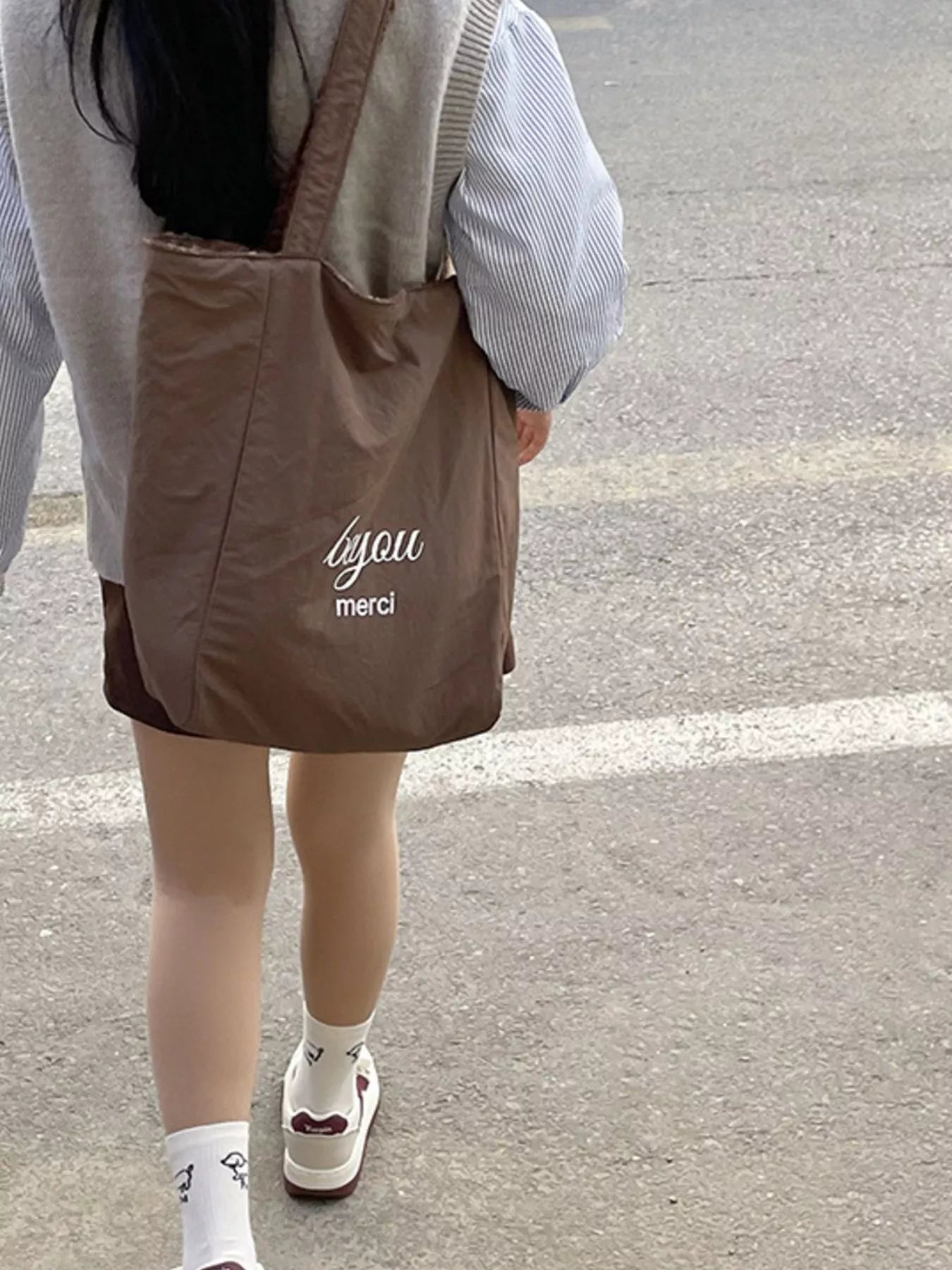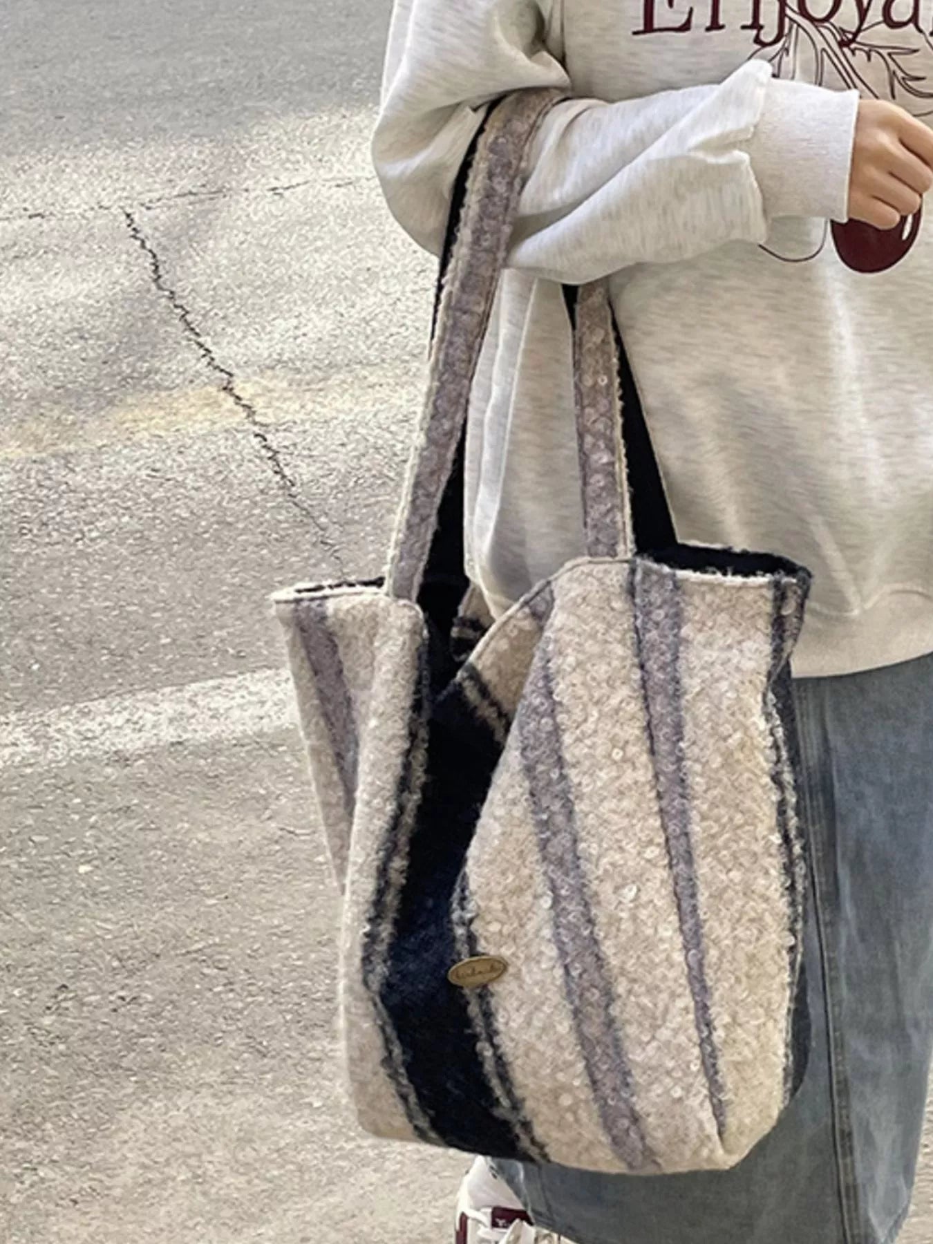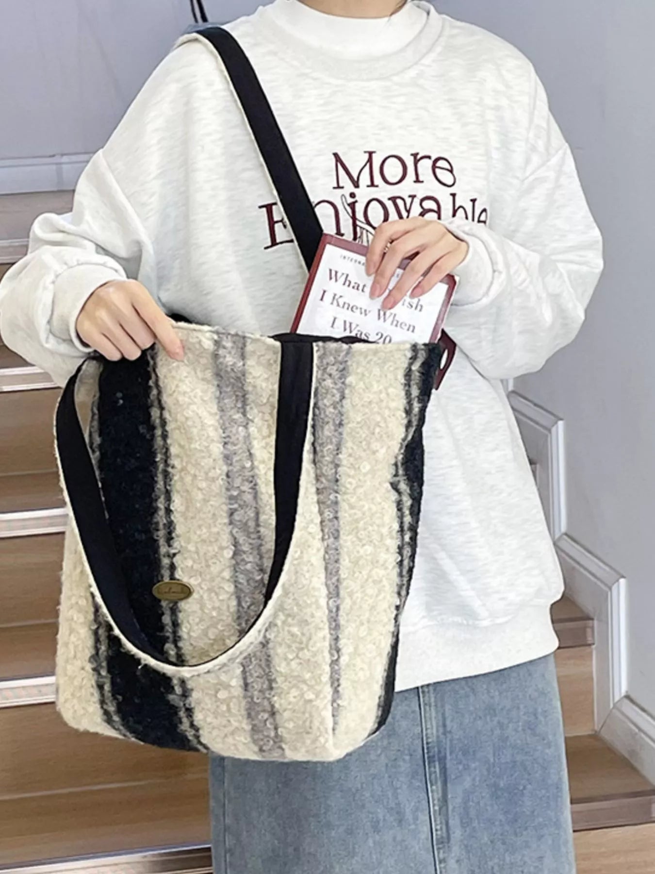Suede Tote Bag wurg Faux Leather Trim Shoulder Strap
