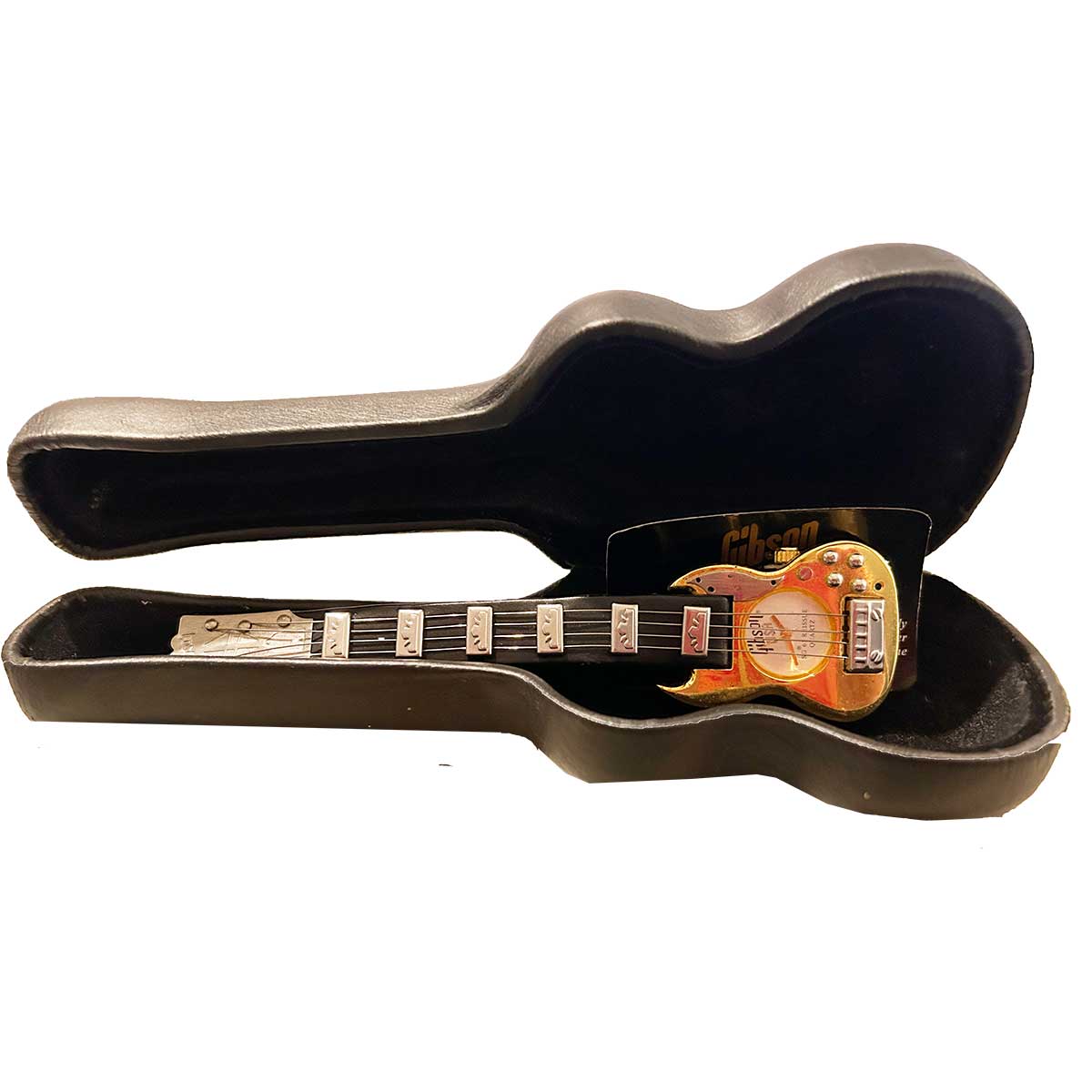 Rock out in style with this collectible Gibson USA guitar-shaped wristwatch, dated 1996 and housed in its original hard guitar-style case. This unique novelty watch features a miniature guitar body as the watch face, complete with detailed fretboard, tuning pegs, and a vibrant sunburst design. Great for display, gifting, or any music lover or collector