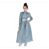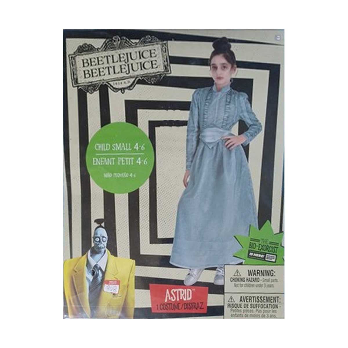 This costume includes a light blue dress with a stand-up collar, puff shoulders, and an attached belt, reflecting Astrid's unique style. It allows kids to embody Astrid's rebellious spirit and gothic flair, making it a standout choice for fans of the Beetlejuice series.