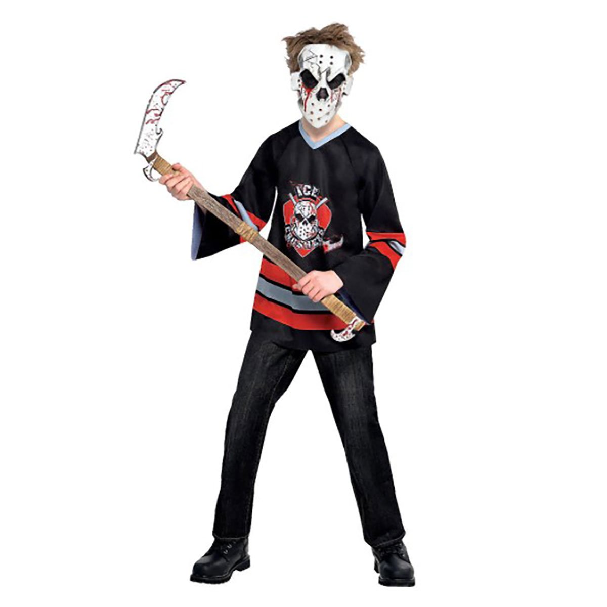 Get ready to score some frightful points with the Boys Bloody Face-Off Hockey Costume. With a creepy jersey, blood-splattered face mask, and eerie hockey stick, this costume is a real game-changer. Perfect for Halloween or a hauntingly fun costume party.