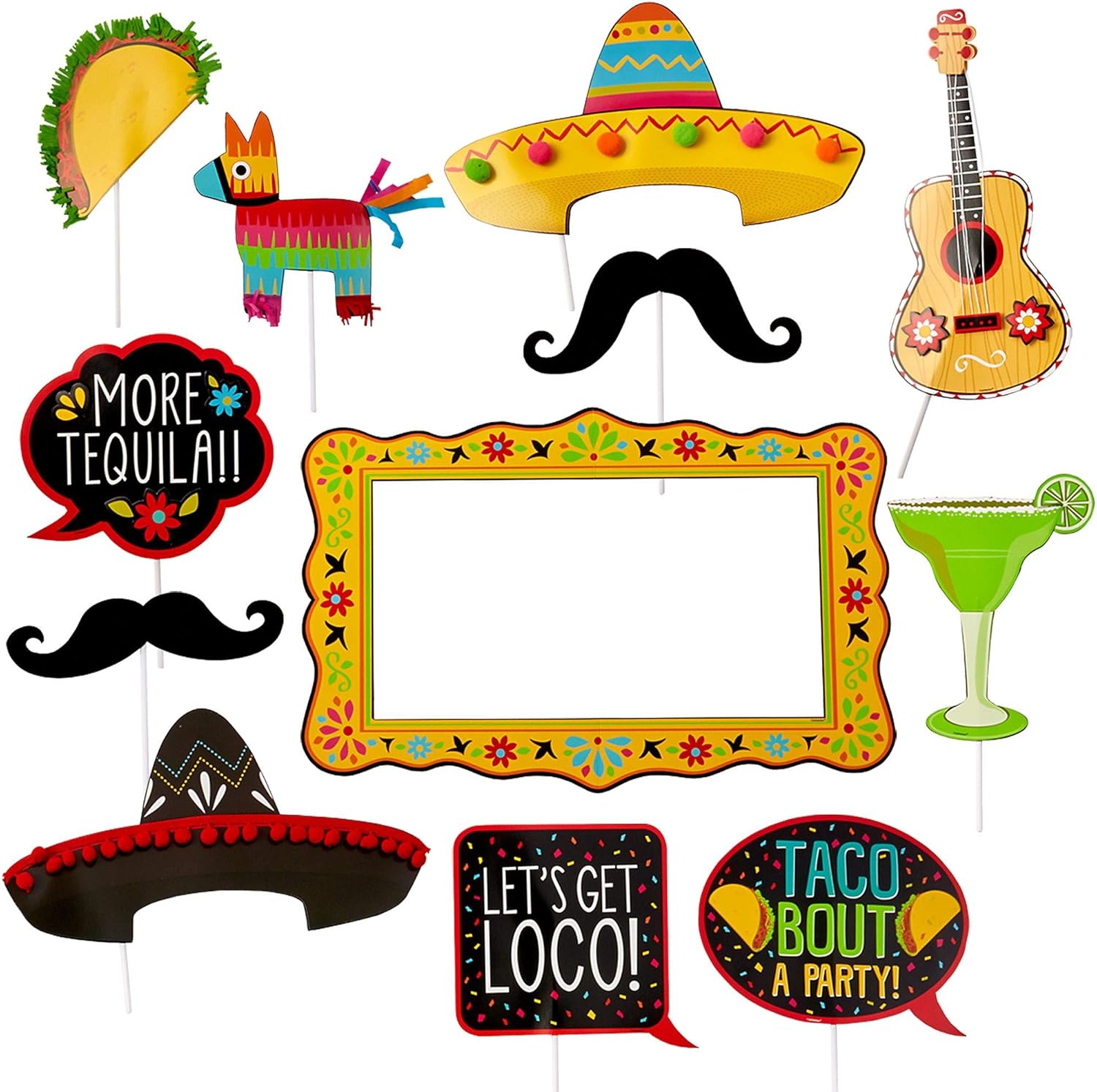 Transform your celebration into a vibrant fiesta with this 23-piece table decorating kit. The set features a striking flowering cactus centerpiece with bold "FIESTA" lettering, complemented by sombrero-shaped accents and coordinating confetti shaped like sombreros, piñatas, peppers, flowers, and maracas. Quick assembly means more time enjoying your party. Perfect for Cinco de Mayo, summer gatherings, or any festive occasion that calls for authentic Mexican flair and eye-catching color.