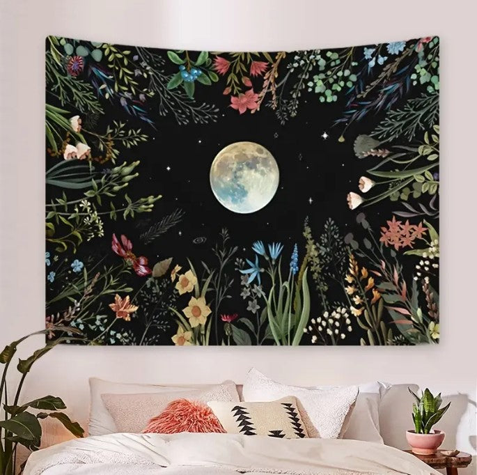 Feel like you're sleeping under the stars with this mystical tapestry. Hang it in your bedroom, dorm room, or game room to enjoy the metaphysical night sky with moon and flowers! A great way to turn any space into a dreamy retreat.