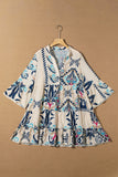 Printed Notched Three-Quarter Sleeve Mini Dress