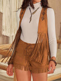 Tassel Hem Vest and Lace-Up Shorts Set