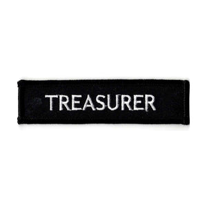 This is a Treasurer embroidered iron on patch. The patch measures 4 across and 1 down. The writing on the patch is in white with a black background. The patch can be sewn on or iron on. The patch is great for hats,bags,shirts,ectWe Also Recommend